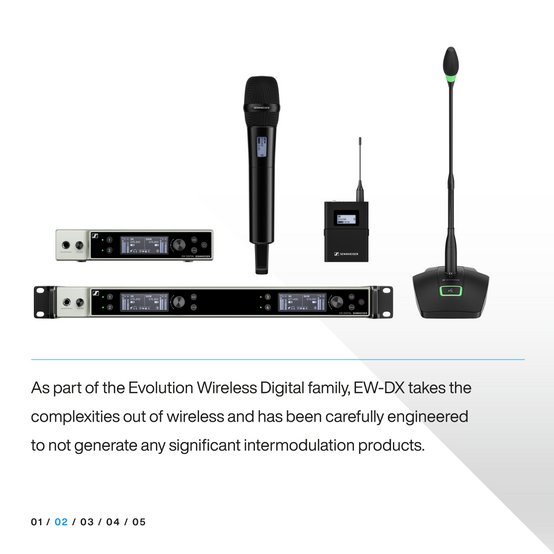 As part of the Evolution Wireless Digital family, EW-DX takes the complexities out of wireless and has been carefully engineered to not generate any significant intermodulation products.